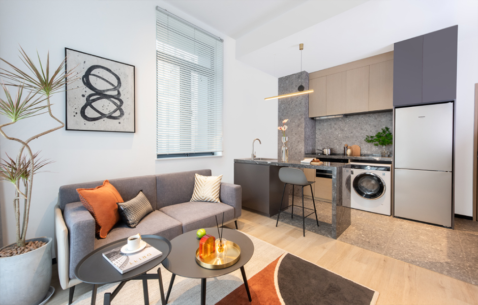 Baseliving北京佰舍-工体作为base佰舍入驻北京的首个公寓项目,精心选址于北京著名的三里屯。经典的黑色嵌入在白色建筑中,现代简约的设计风格与潮流文化融为一体,相得益彰。穿过繁华的街区,转角进入幽静小道,瞥见那一抹白,佰舍————近在咫尺。