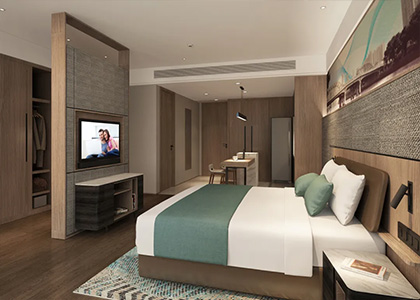 金隅环贸国际公寓于2012年10月开业,是为高端国际商务人士及其菁英家庭缔造的理想府邸,处处显露出对高端品质的坚持。值得眷顾的家是一个和悦的生活系统,在公寓每套精心布局的居室中餐厅、客厅、卧房都彰显构思巧妙,区域分明而又浑然一体。