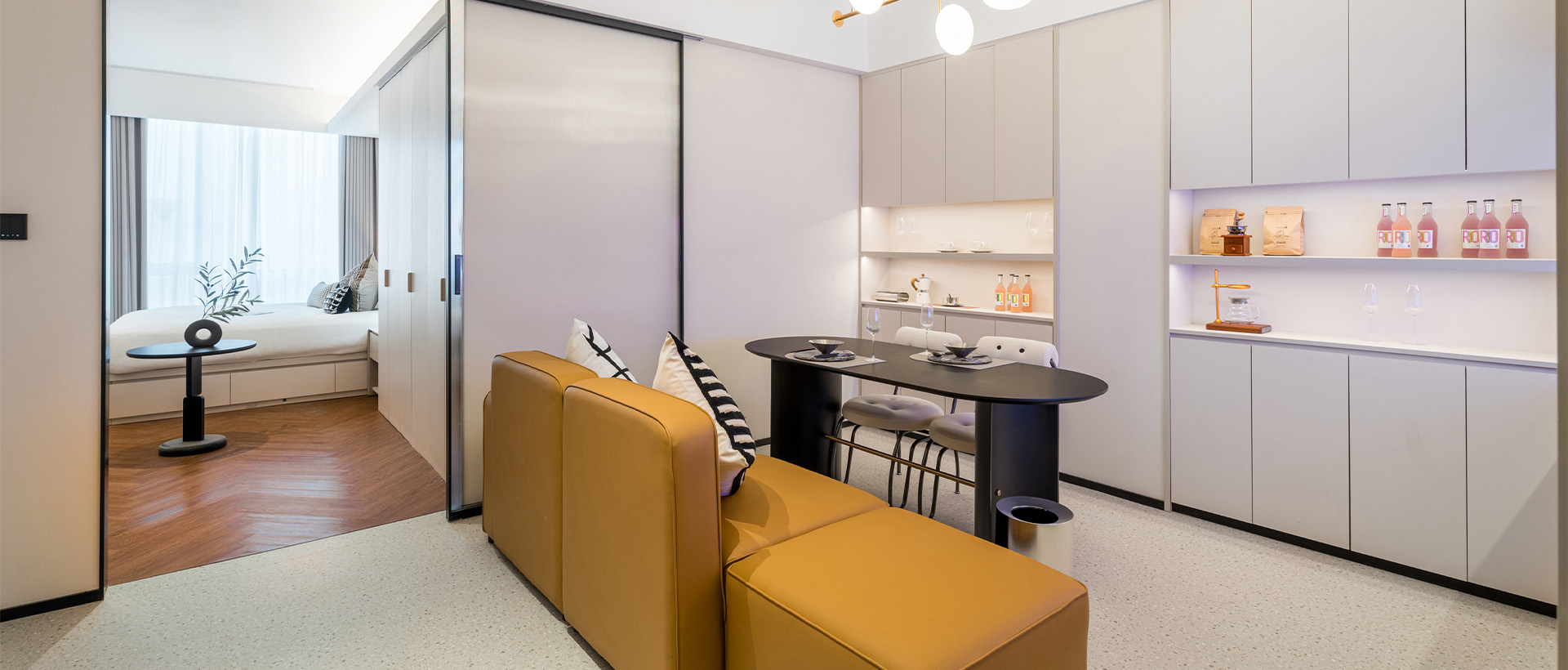 上海苏河瑞贝庭公寓酒店位于融创精彩天地综合体内,大宁国际商业广场、环球港、附近4km以内,上海恒隆广场、久光百货、大悦城等。区域内餐饮娱乐设施丰富,周边街区居住氛围浓郁。公寓临近市中心静安区,地铁3号线、4号线、7号线三线环绕,加上内环高架的通达性,30分钟内可轻松到达城市各主要商圈及景点。